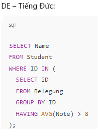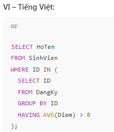 2. Subquery – Tìm sinh viên có điểm trung bình lớn hơn 8