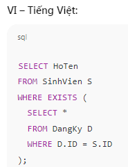 EXISTS / IN: Kiểm tra sự tồn tại hoặc thuộc tập kết quả