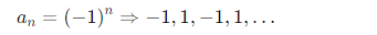 → keine Konvergenz, da die Folge springt und kein Grenzwert existiert.